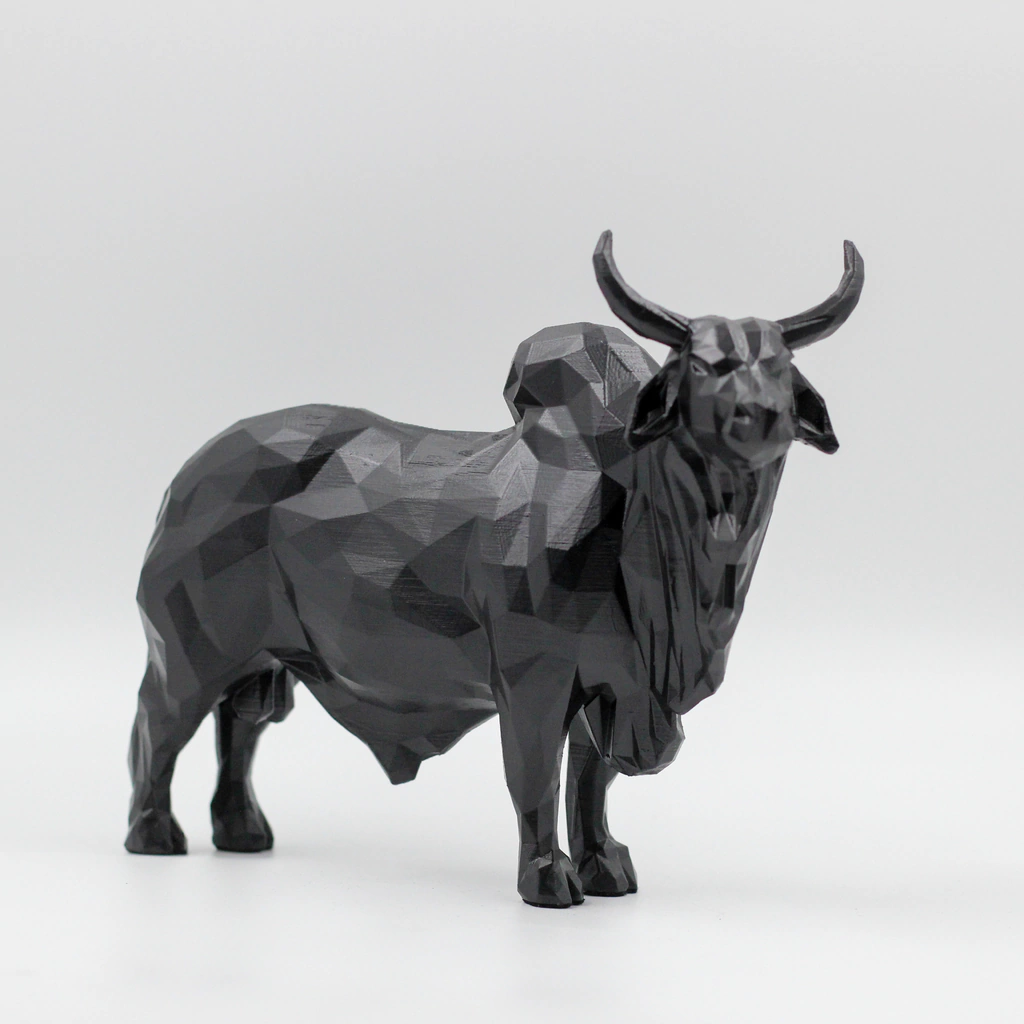 Réplica geométrica projetada para os admiradores da vida agro. Criamos uma escultura exclusiva!!! Estou falando da raça GUZERÁ!!! Estou dizendo de um dos melhores na produção de carne e leite que foi introduzido no Brasil por se ter uma boa seleção!! Se você gosta dele, você já sabe disso melhor do que eu!! Então, o que ta esperando, assim como na vida real, a nossa escultura trás consigo as caracteristicas principais do Guzerá: Porte imponente, cabeça alta e chifres grandes!!